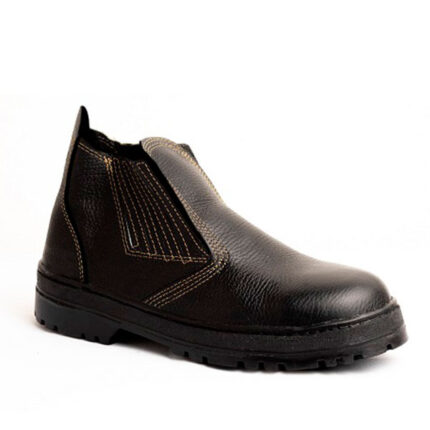 Botina solado borracha nitrílica resistente a 300º por 1 minuto de exposição, 100% blaqueado, protetor de metatarso externo, em couro preto, fechamento em elástico nas laterais recobertos, forração interna, acolchoamento no dorso, biqueira de aço, palmilha de montagem poliéster resinado e palmilha de conforto removível. CA 40523